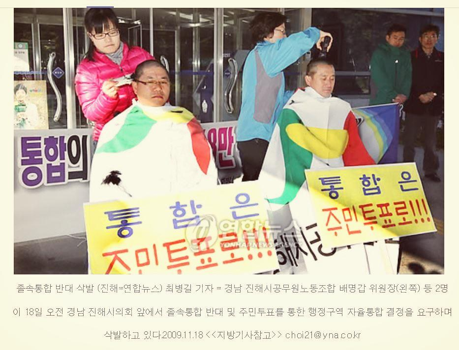 "2010년 진해통합을 반대하는 시민들의 삭발투쟁"