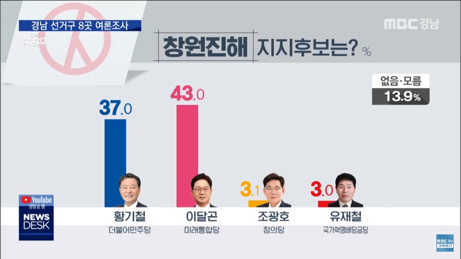 그럼에도 불구하고 진해 국회의원 후보에 대한 여론조사를 보면 통합을 주도한 미래통합당에 대한 지지율이 높게 나타나고 있습니다.