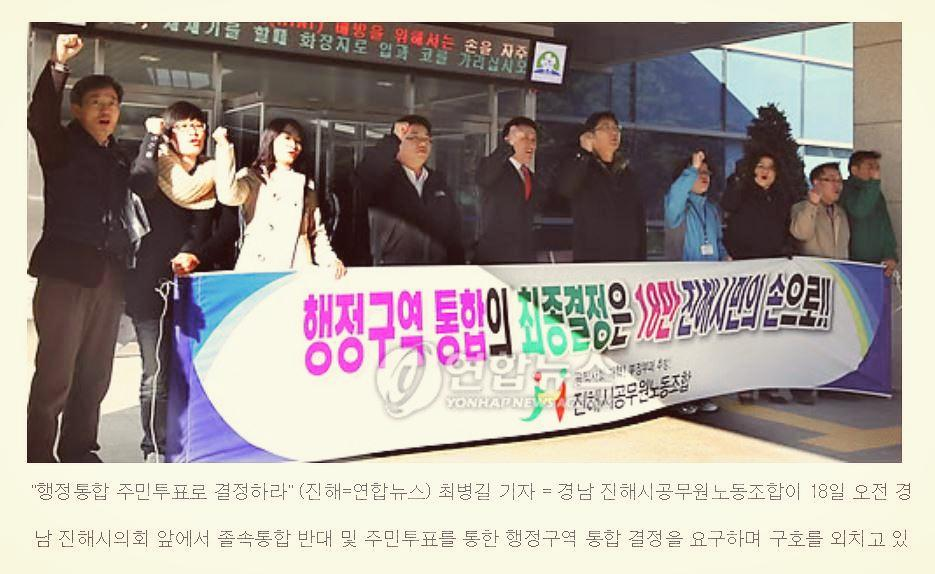 진해시민들은 통합을 한사코 반대했지만 당시 여당인 한나라당 시장, 국회의원, 시의원들이 대통령 이명박과 행자부 장관 이달곤의 눈치를 보느라 통합에 찬성표를 던지고 말았습니다.