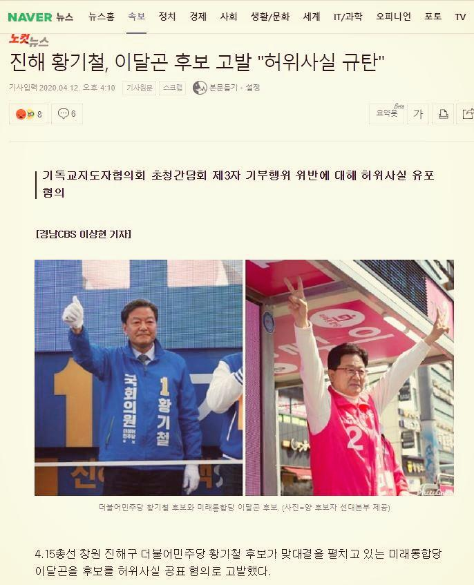 이달곤 후보의 청년당원모집 기사와 황기철 후보 의혹제기 기사를 쓴 언론사가 동일한 인터넷 언론사입니다.
