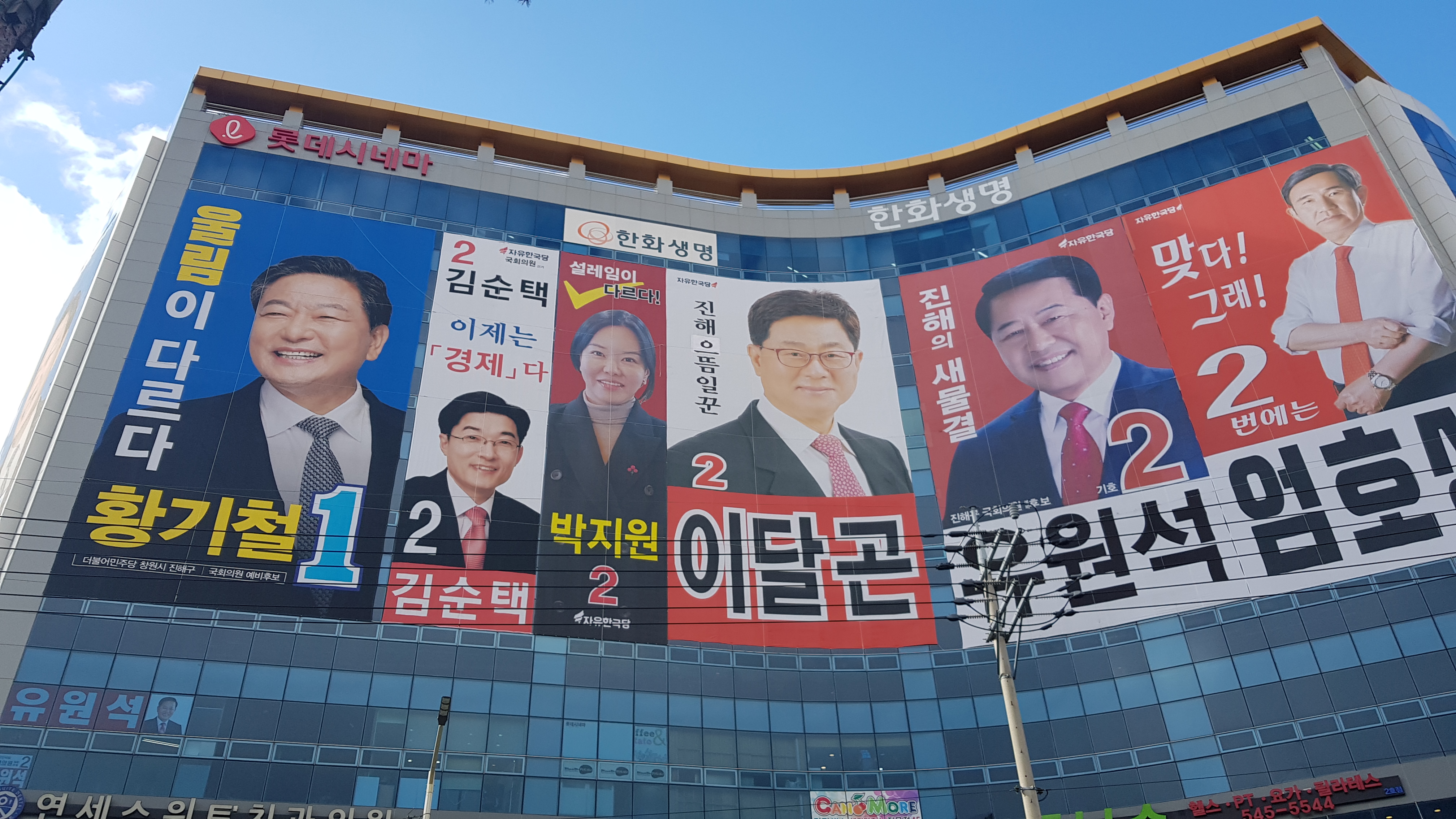 21대 총선을 70여일 앞두고 진해의 가장 교통요충지에 있는 롯데시네마 건물에 붙은 국회의원후보들의 현수막을 보면 ‘정치인들이 바라보는 진해라는 동네가 이 정도로 만만하게 보이는 동네인가?’라는 생각이 듭니다. 진해가 퇴역군인들이 많이 사는 보수적인 도시이기는 하지만 최근에는 새로운 아파트가 많이 들어서는 바람에 40대 이하 젊은 연령층이 많이 늘어나 지난 대선과 지방선거에서는 민주당이 강세를 보여줬던 곳이기도 합니다. 그런데 사진에서 보다시피 더불어민주당 황기철 예비후보를 제외하고 나면 모두가 자유한국당 공천을 받기 위해 목을 매달고 있습니다. 그런데 말입니다. 그 후보들 중에서는 지금까지 당과 지역을 꾸준히 지켜온 사람도 있지만 여기 기웃 저기 기웃하다가 ‘옳거니 여기가 만만한 곳이구나!’하고 진해를..